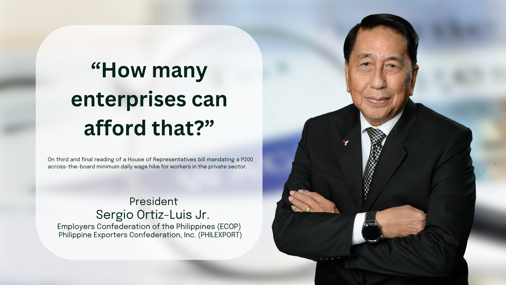 Sergio R. Ortiz-Luis Jr., president of the Employers Confederation of the Philippines (ECOP), in a Thursday (June 5) interview with ONE News said the approval of the bill by the Lower House appeared to be “political” and probably related to “promises [made] during the election.”