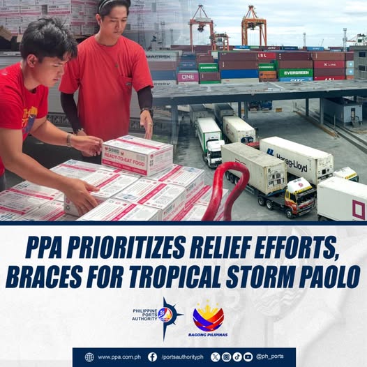 The Philippine Ports Authority (PPA) assured the public that the agency prioritizes the movement of relief goods transported via ports while also preparing for the possible impact of Tropical Storm Paolo.