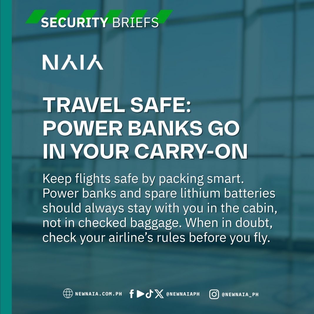 The New NAIA Infra Corp., the operator of Ninoy Aquino International Airport (NAIA), issued a strong reminder to all passengers regarding the strict regulation on carrying power banks and spare lithium-ion batteries.