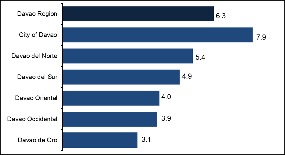 Notably, the City of Davao was the only economy that recorded a growth rate faster than the overall regional average of 6.3 percent.