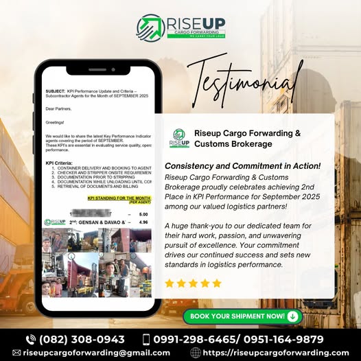 Riseup Cargo Forwarding & Customs Brokerage announced a significant achievement, earning 2nd Place in Key Performance Indicator (KPI) Performance for September 2025 among its core network of trusted logistics partners.
