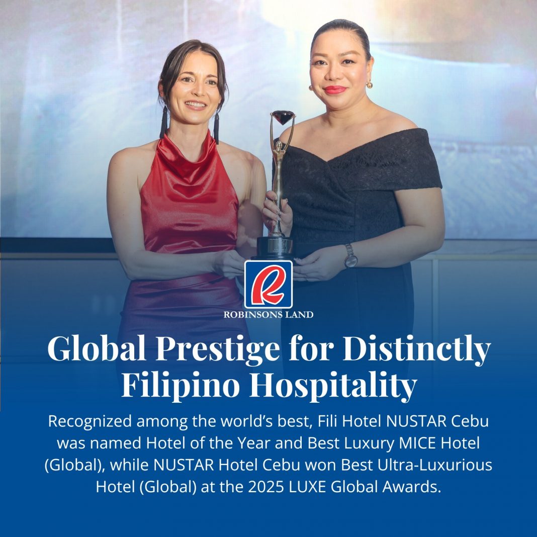 Robinsons Hotels and Resorts (RHR), the hospitality arm of Robinsons Land Corporation (RLC), announced today that it has achieved unprecedented global acclaim at the prestigious 2025 LUXE Global Awards. The integrated resort complex, NUSTAR Cebu, earned three of the night’s highest distinctions, showcasing the Philippines’ emergence as a premier luxury destination.