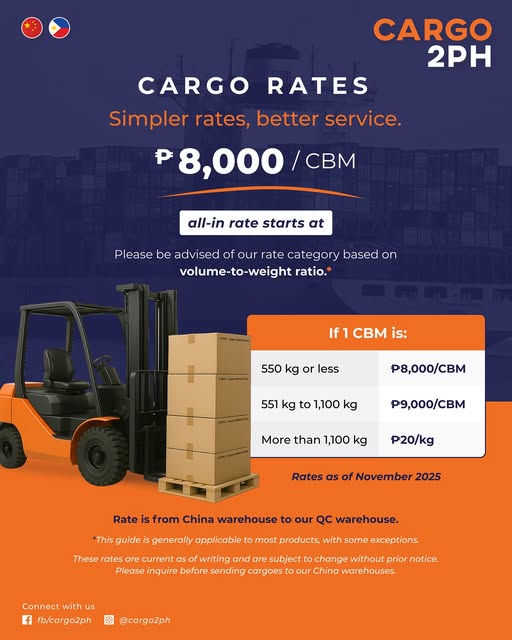 CARGO2PH, a leading logistics provider specializing in seamless shipping solutions from China to the Philippines, today announced a major enhancement to its pricing structure. The company has streamlined its freight rates to offer a single, transparent all-in rate starting at just ₱8,000 per Cubic Meter (CBM), designed to significantly improve the efficiency and reliability of the shipping experience for all clients.