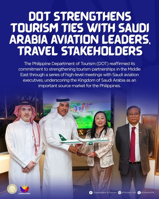 The Department of Tourism (DOT) has successfully concluded a series of high-level engagements with Saudi aviation executives in Riyadh, reaffirming the Kingdom of Saudi Arabia as one of the Philippines’ most dynamic and fastest-growing source markets. The meetings centered on significantly enhancing air connectivity and accelerating joint tourism promotion initiatives.