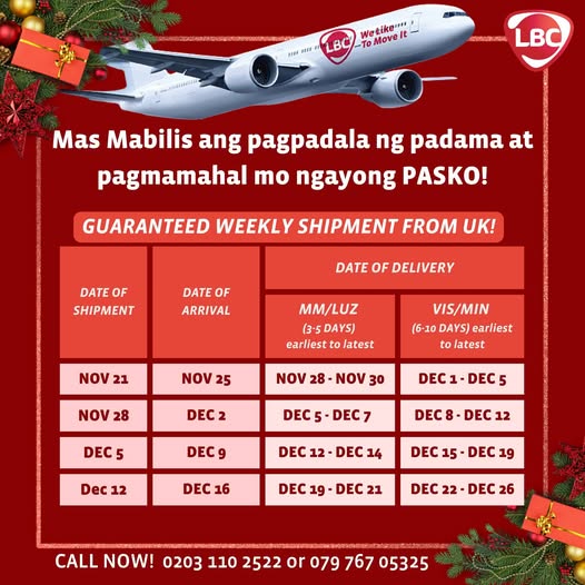 “Let’s bring joy and love to your families this Christmas—the LBC way. Don’t let your thoughtful gifts become New Year’s surprises. Ship today and secure your spot in the queue for pre-Christmas delivery,” the LBC Express spokesperson added.
