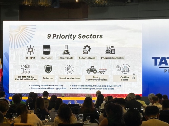 Under the Tatak Pinoy Strategy, created through the The Tatak Pinoy Act, designated as Republic Act No. 11981, authored by then-Senator Sonny Angara, nine industries have been selected for priority development: IT-BPM, cement, chemicals, automotive, pharmaceuticals, electronics and electrical devices, defense, semiconductors, and food/agro-processing.