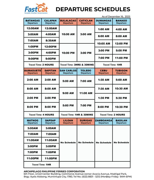 “Our goal is to provide a stress-free travel experience,” said a FastCat spokesperson. “By optimizing our Dumangas-Banago route, we are offering more flexibility for our passengers, ensuring they spend less time waiting and more time with their loved ones this Christmas season.”