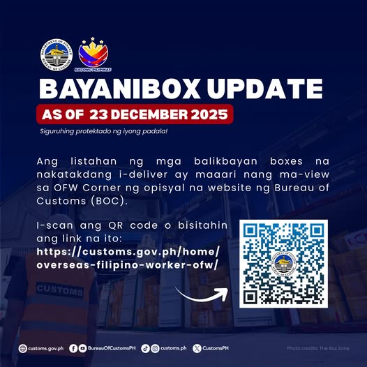 “We understand how important these boxes are to our OFWs and their families,” the Bureau stated. “Our goal is to streamline the process and ensure that these tokens of affection are delivered with the integrity and urgency they deserve.”