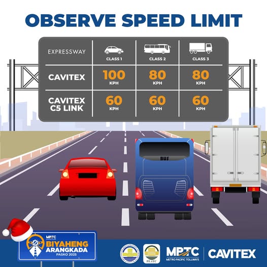CAVITEX (Manila-Cavite Expressway) and the CAVITEX C5 Link are reinforcing their commitment to commuter safety by reminding all motorists to strictly observe the designated speed limits across its network.