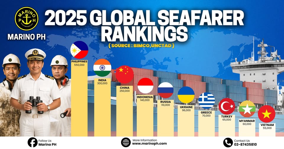 The 2025 Global Seafarer Rankings, utilizing the latest industry data from BIMCO (Baltic and International Maritime Council) and UNCTAD (United Nations Conference on Trade and Development), have officially confirmed the Philippines as the world’s premier supplier of maritime talent.