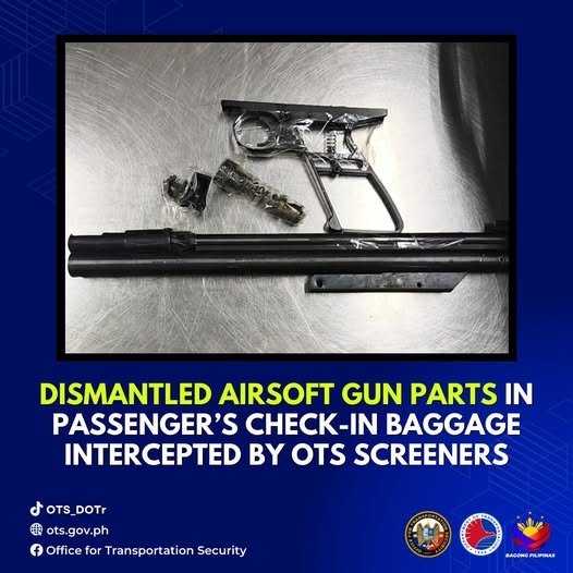 Security Screening Officers (SSOs) from the Office for Transportation Security (OTS) successfully intercepted dismantled components of an airsoft gun at Ninoy Aquino International Airport (NAIA) Terminal 3 on January 4, 2026.