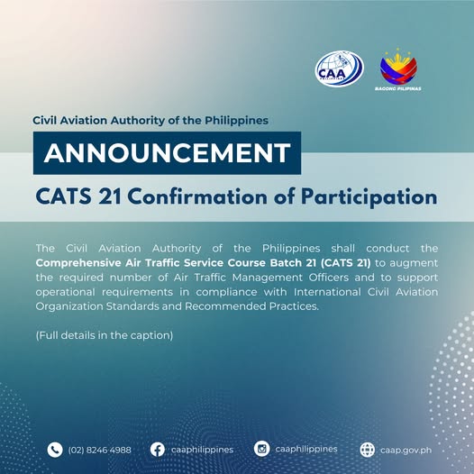 The Civil Aviation Authority of the Philippines (CAAP) has officially announced the commencement of the screening and evaluation phase for the 21st Batch of the Comprehensive Air Traffic Service Course (CATS 21).
