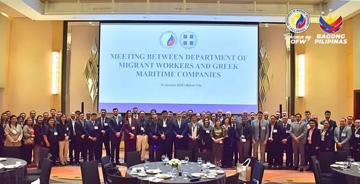 The Department of Migrant Workers (DMW) convened a high-level bilateral meeting with a prominent Greek delegation yesterday, January 15, at the Fairmont Hotel, Makati City. The session focused on reinforcing safety protocols, improving employment conditions, and ensuring the holistic welfare of Filipino seafarers currently deployed on Greek-owned vessels.