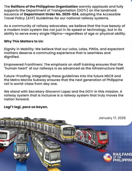The Railfans of the Philippines Organization (RPO), the nation’s premier community of railway advocates and historians, officially declares its full support for the Department of Transportation (DOTr) following the landmark issuance of Department Order No. 2025-024.