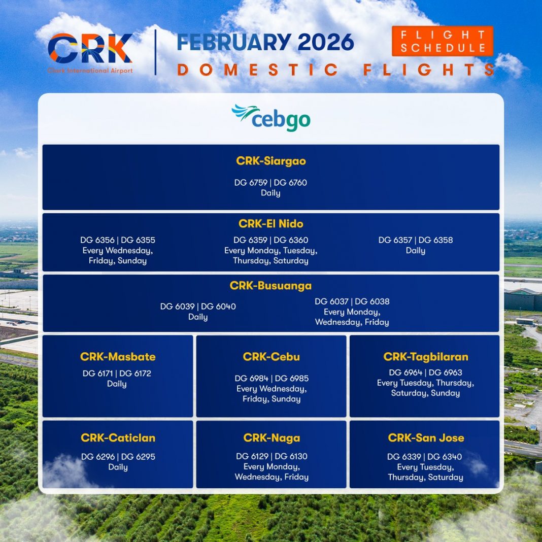 Travel Made Easy Recognizing that modern travelers value time and convenience, CRK encourages passengers to utilize its digital resources. The full, updated February schedule for all airline partners is now available online. By planning ahead, travelers can secure the best fares and enjoy the world-class amenities the airport has to offer, including a variety of dining options, retail outlets, and comfortable lounge areas.