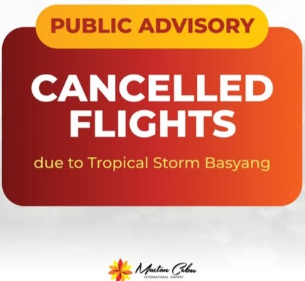 Mactan-Cebu International Airport (MCIA) has issued a public advisory regarding flight cancellations resulting from the adverse weather conditions brought by Tropical Storm Basyang.