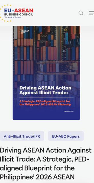A new report titled “Driving ASEAN Action Against Illicit Trade: A Strategic, PED-aligned Blueprint for the Philippines’ 2026 ASEAN Chairship” unveiled today, February 12, 2026, by the EU-ASEAN Business Council said illicit trade is a strategic economic risk to ASEAN’s growth and should be highlighted in the 2026 Priority Economic Deliverables (PEDs) of the Philippines.