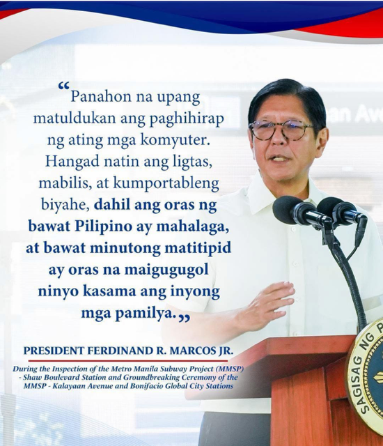 Prior to the BGC-Kalayaan groundbreaking ceremony, the President also inspected the subway’s Shaw Boulevard Station in Pasig, which is under Contract Package 104 (CP 104) of the MMSP.