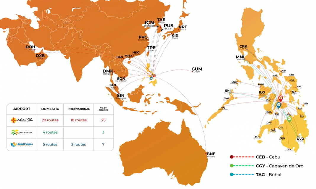 Aboitiz InfraCapital, Inc. (AIC), the infrastructure arm of the Aboitiz Group and the country’s largest airport operator outside Manila, continues to expand domestic air connectivity across the Philippines by growing a network of direct and mostly exclusive routes from its three gateways: Mactan-Cebu International Airport (MCIA), Bohol-Panglao International Airport (BPIA), and Laguindingan International Airport (LIA).