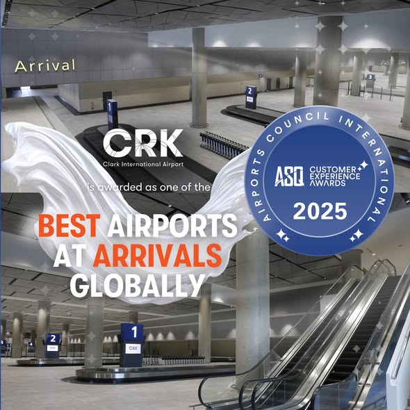 Clark International Airport (CRK) has achieved a major global milestone, being named one of only six airports worldwide to receive the Best Airports at Arrivals Globally award at the 2025 Airport Service Quality (ASQ) Customer Experience Awards.
