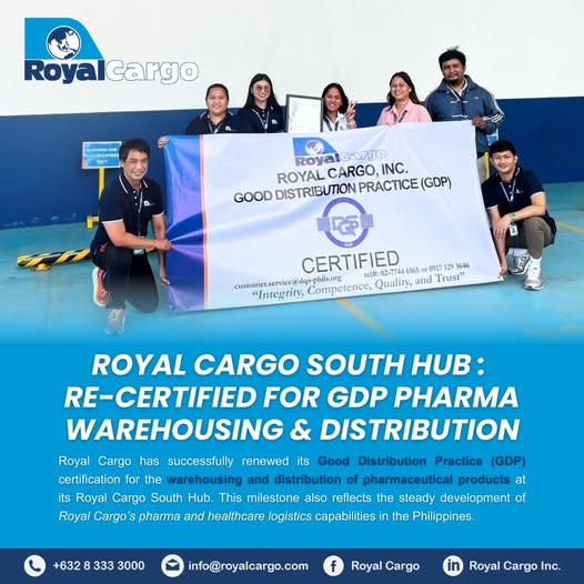 “The renewal of our GDP certification reflects the steady development of Royal Cargo’s pharma and healthcare capabilities,” said a spokesperson for Royal Cargo. “By combining specialized infrastructure with rigorous quality management, we are providing the Philippine market with the reliability required for sensitive medical shipments.”
