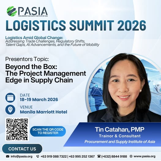 A highlight of this year’s program is a keynote presentation by Tin Catahan, a distinguished Trainer and Consultant at PASIA. With years of expertise in streamlining organizational workflows, Ms. Catahan will present her session: “Beyond the Box: The Project Management Edge in Supply Chain”