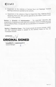 – Suspension of fees for Single Entry Pass, Watering Permit, Bunkering Permit, and other Harbor Control Center (HCC)-approved permits