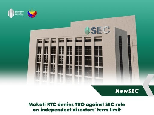 The Regional Trial Court (RTC) of Makati, Branch 38, has denied the application for a Temporary Restraining Order (TRO) filed by GMA Network, Inc. against a memorandum circular issued by the Securities and Exchange Commission (SEC), which enforces stricter term limits on independent directors of publicly listed companies.