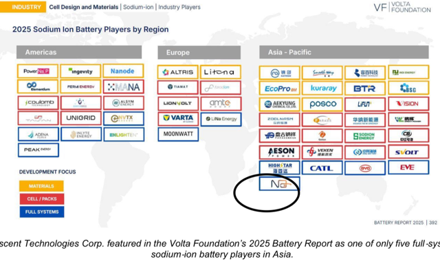 Nascent was recognized in the Volta Foundation’s Annual Battery Report 2025, considered one of the most comprehensive global references on battery technologies. The company was featured in its “2025 Sodium-Ion Battery Players by Region” map.