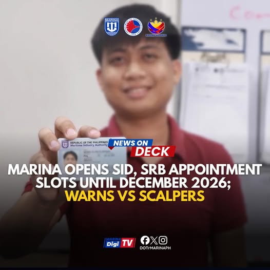 In a major push to streamline frontline services and support the livelihoods of Filipino maritime professionals, the Maritime Industry Authority (MARINA) has officially opened appointment slots for the Seafarer’s Record Book (SRB) and Seafarer’s Identity Document (SID) through December 2026.